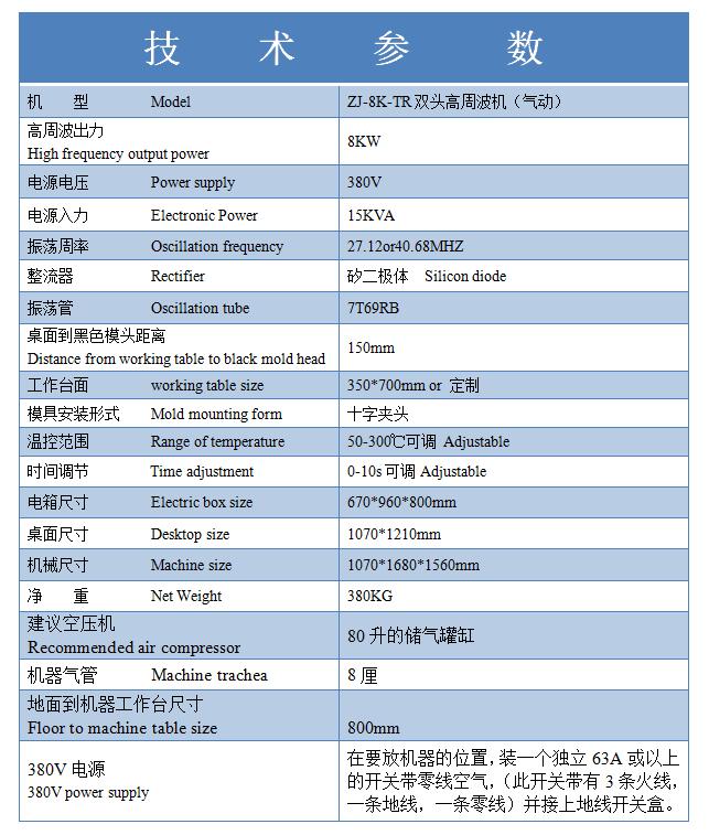 雙頭氣動高周波機壓羽絨標符合歐洲第4代環保標準,主要用于各種LOGO壓印,PVC袋子封口,環保材料封口切邊,以及測血壓袋,血袋,尿袋,引流袋等等醫療袋子封口切邊。這款機器可以氣膜壓氣嘴,適合做充氣產品的廠家。